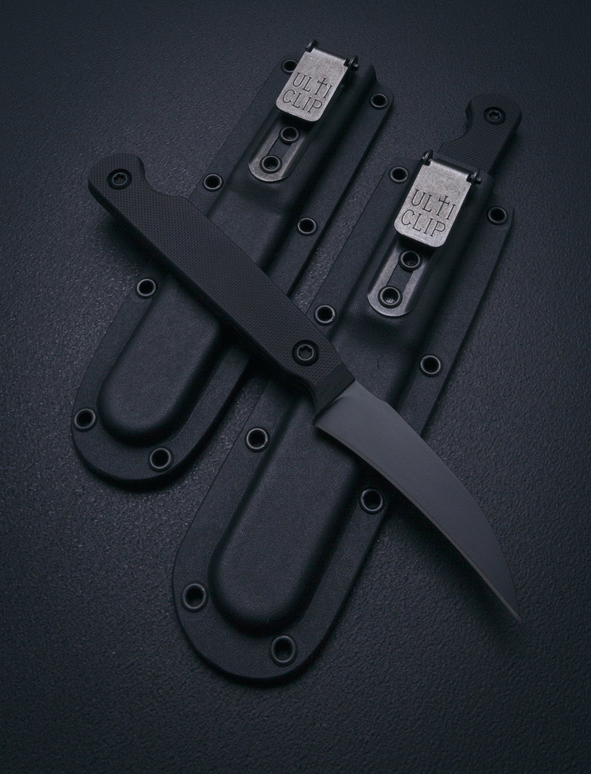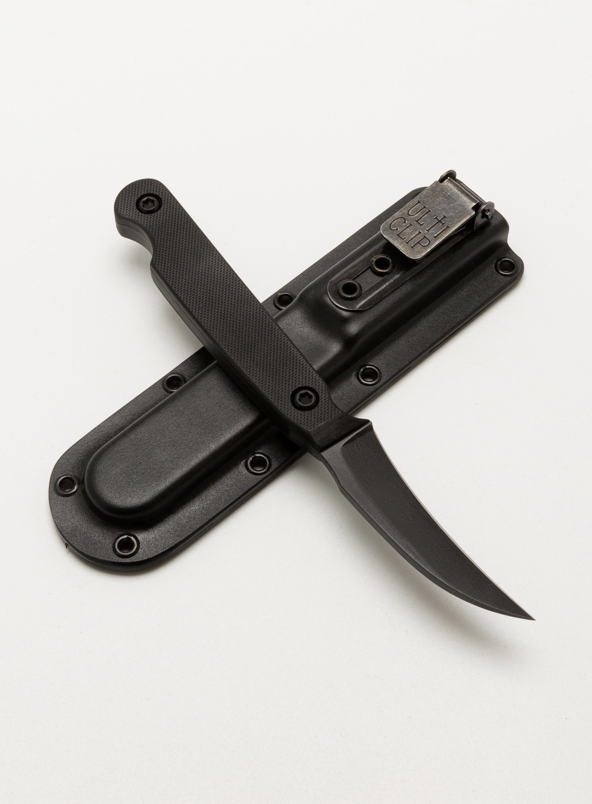 Custom deep carry ambidextrous Kydex sheath with Ulticlip Attachment.