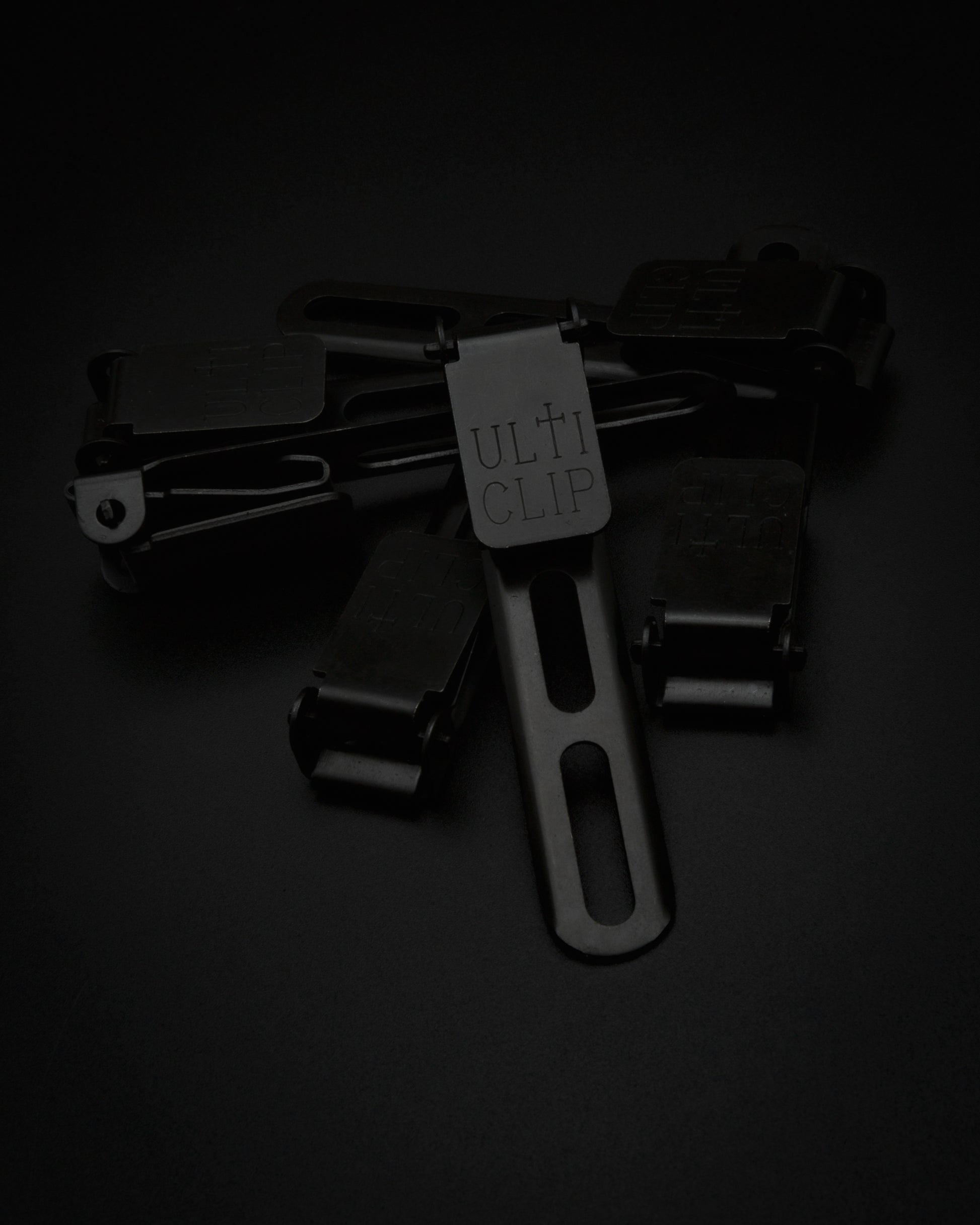 The Ulticlip Slim 3.3 provides great retention and concealment. It has a dual slotted mounting area that allows for 1.5″ hole spacing. The Slim 3.3 is slightly over 1/2″ wide making it ideal for knife sheaths or other narrow applications.